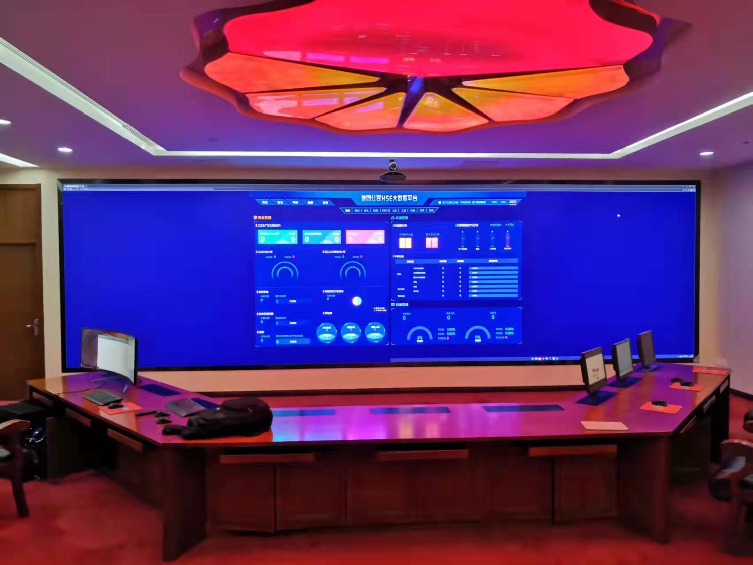 中國石油集團(tuán)安全環(huán)保技術(shù)研究院1層視頻會(huì)議室創(chuàng)新型的運(yùn)用0.93mmLED顯示屏,不僅滿足單位召開視頻會(huì)議室使用,同時(shí)可用于超高分圖像的展示工具,對研究院研發(fā)團(tuán)隊(duì)成果展示、實(shí)驗(yàn)過程分析提供保障。同時(shí)對現(xiàn)有視頻會(huì)議功能進(jìn)行升級,由原來模擬、標(biāo)清視頻會(huì)議形式升級為高清、4K會(huì)議,